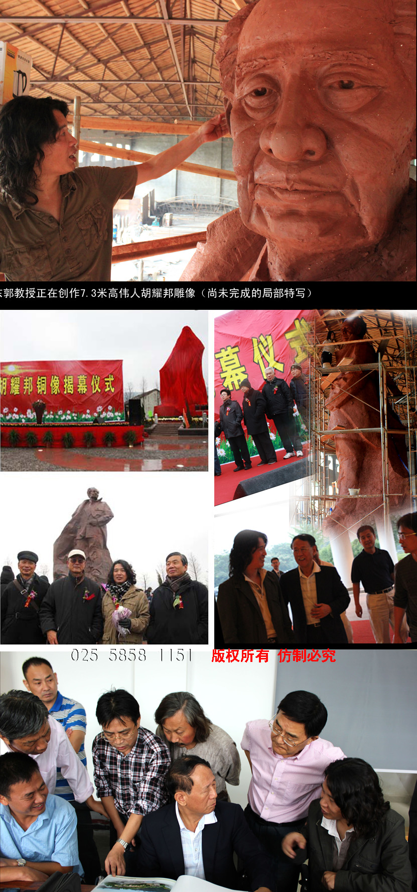 原中共中央統戰部副部長、全國工商聯黨組書記胡德平和江蘇文化界人士集體合影東郭教授正在創作七米三高偉人胡耀邦雕像)